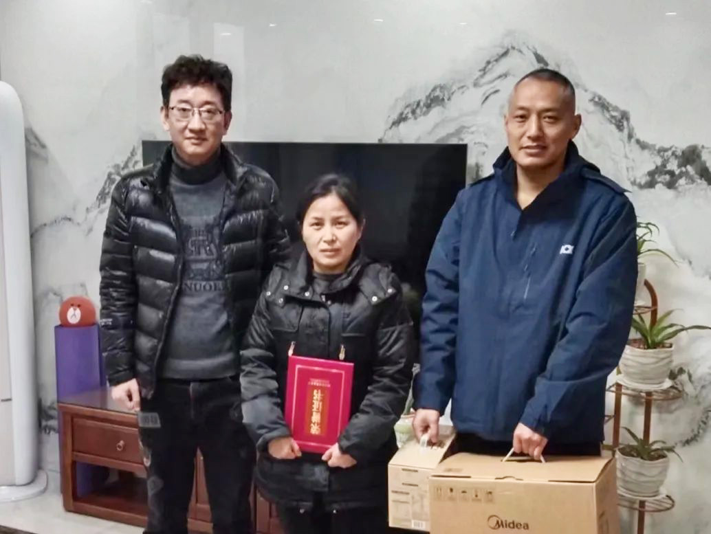 1月14日,豐源高科組織慰問年度評優(yōu)評先員工代表,互感器車間生產(chǎn)副總王慶虎、成套車間生產(chǎn)副總童政帶領(lǐng)相關(guān)部門負責(zé)人一同前往員工家里,向他們致以新春的美好祝福,并送去過節(jié)慰問禮品。